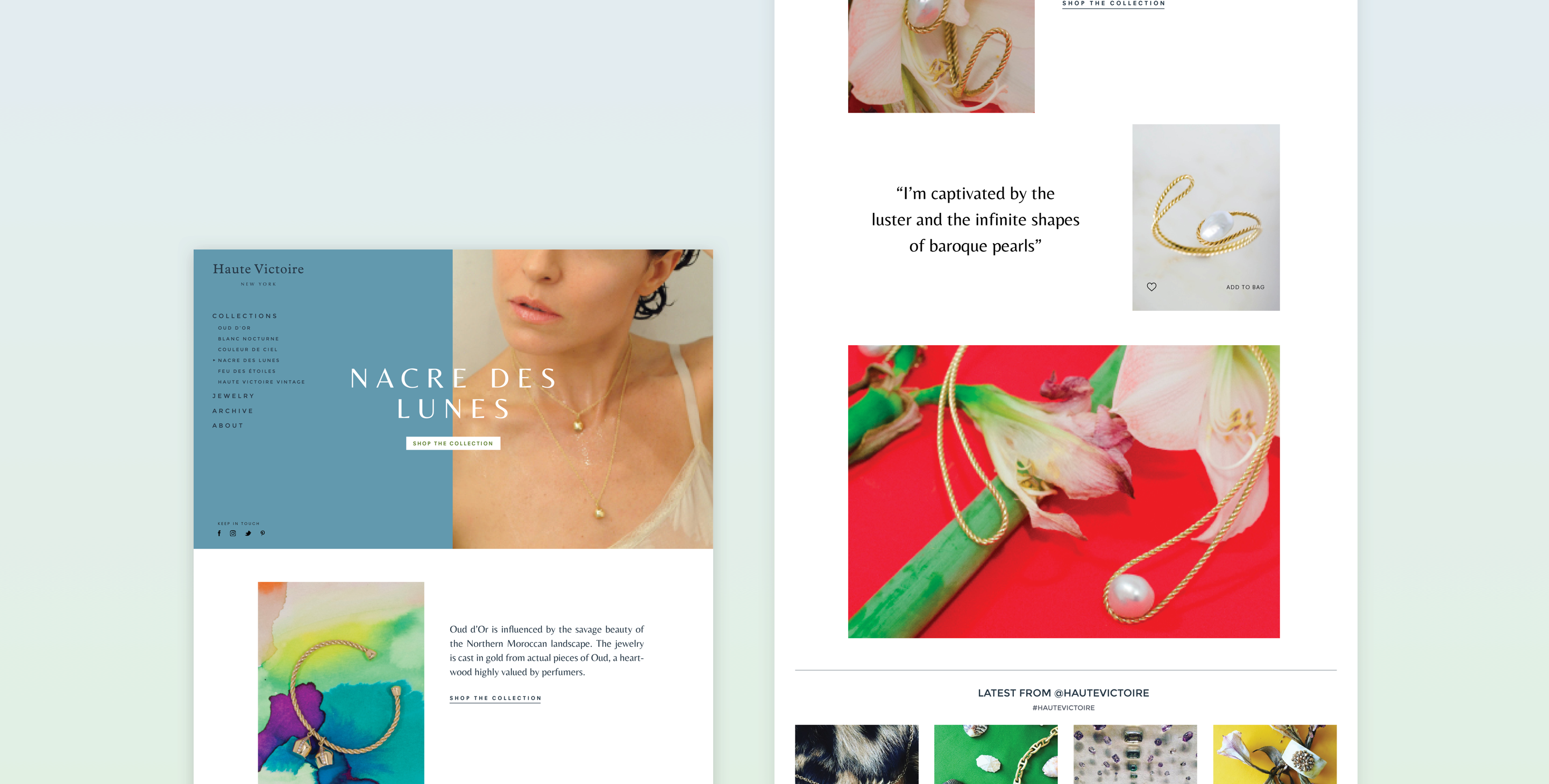At Reflexgroup, I collaborated with the design team to build and develop a responsive e-commerce site for a high-end jewelry boutique in NYC called Haute Victoire. The main goal was not only to translate the client's requests into practical design solutions but also to embrace the uniqueness and vintage so that the brand's aesthetics and look and feel could be accurately reflected.
